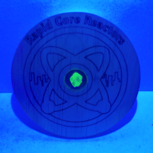 Located at the center of our laser etched atomic logo is a crystal of autunite (hydrated calcium uranyl phosphate), which is nearly 50 percent uranium by weight. Under the illumination of the included ultraviolet lights, the crystals glow a striking bright green. Caution! This product is mildly radioactive and the handling instructions are as follows. Do not leave the medallion in direct contact with skin for more than 133 hours per year according to the limits imposed by the Nuclear Regulatory Commission [100 mrem/yr], and do not attempt to extract the uranium from the sealed epoxy resin. Most of the radiation produced is safely contained within the resin, and radiation levels are nearly undetectable at distances greater than one foot.